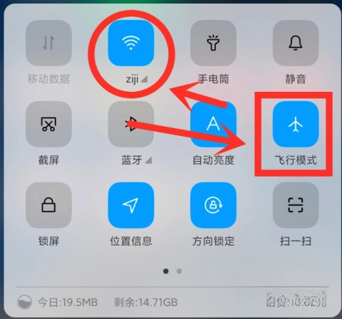 1、开启飞行模式,确保无线网络处于关闭状态。