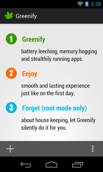 再也不用嫉妒朋友的iPhone手机,即使安装大量应用,也不会变得迟缓和耗电。有了绿色守护,你的Android设备也能永葆第一天拥有它时的爽滑持久! 绿色守护帮助你甄别那些对系统全局性能和能耗有不良影响的应用程序,并通过独特的绿色化技术,阻止它们消耗您的电池电量,占用您的宝贵内存。经过绿色化工艺处理的应用,在您没有主动启动它们的时候,无法偷偷运行,而在您正常启动它们时仍然拥有完整的功能和体验,正如iPhone/iPad应用那样!绿色守护要求ROOT权限以完成对应用的绿色化工艺。如果您遇到绿色化的应用因ROOT权限无法正常进入休眠的提示,这可能是由于您使用的ROOT权限管理工具(如SuperUser)有缺陷所造成,建议换用SuperSU。 重要说明: