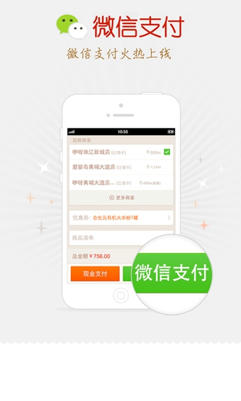 1、微信支付,用户下单时可以手机在线支付;
