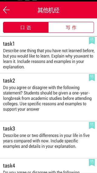 3.小马托福机经汇集了TPO小站,豆腐机经,和竹子机经三家主流机经预测机构的预测题目,包含口语和写作。