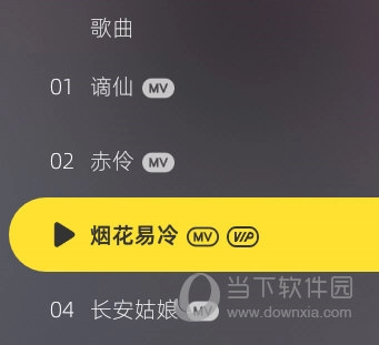 一些歌曲名称后方标明MV字样即可支持MV视频播放。