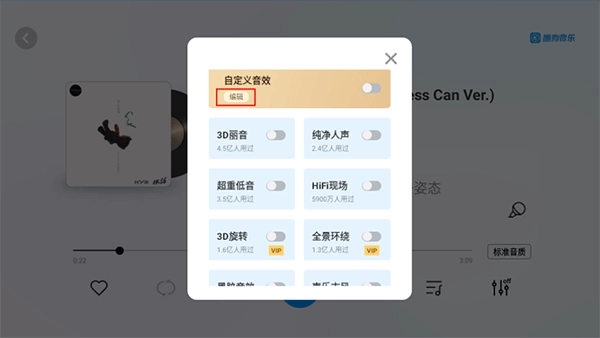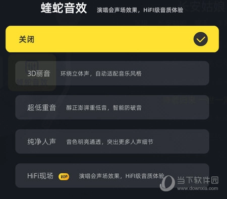 在听无损音质的歌曲时,打开酷狗音乐专属的蟒蛇音效来感受更加强力的音乐魅力吧。