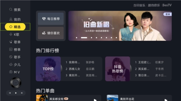 2、当贝酷狗音乐丰富音乐场景,一键随心同步音乐资源