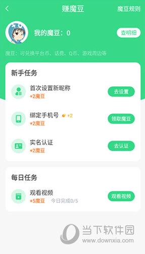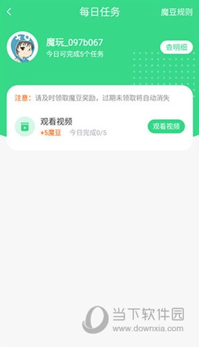 4、在我的功能模块这里可以作任务、签到等途径获得魔豆。