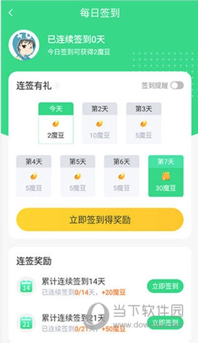 3、还有每日签到,连续签到会获得更多得魔豆;