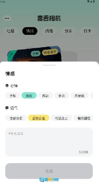 1、专注朋友圈文案生成,针对深夜emo、被老板骂等场景,快速输出“毒舌”风格文案;