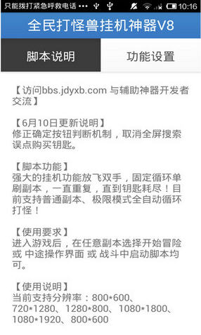 1、在游戏中即可启用脚本,进入游戏脚本将自动判断运作。2、启动时,悬浮窗不可遮挡技能按钮(教学引导需手动跳过)