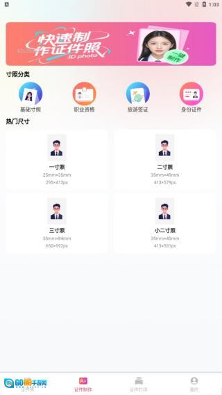 3、证件照制作界面,有寸照分类,热门尺寸,都可以随时去开启制作。