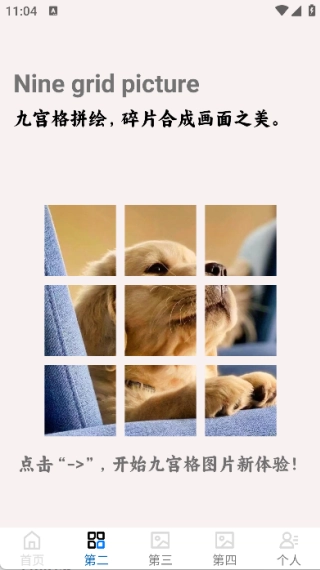2、在第二页面中可以上传图片,然后体验九宫格的美化操作;