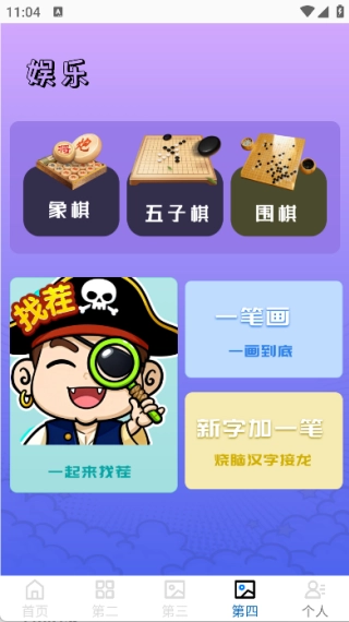 4、在第四页面中有象棋、五子棋、围棋等游戏,还有一起来找茬、一笔画和新字加一笔等内容。