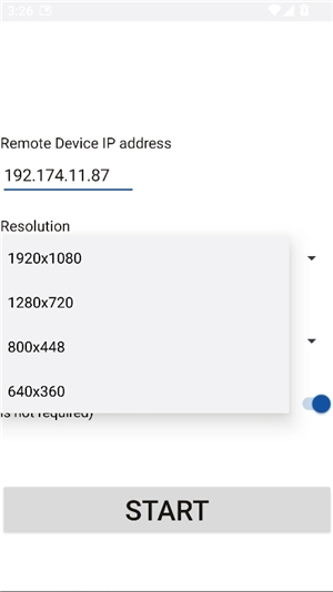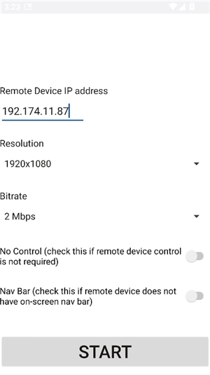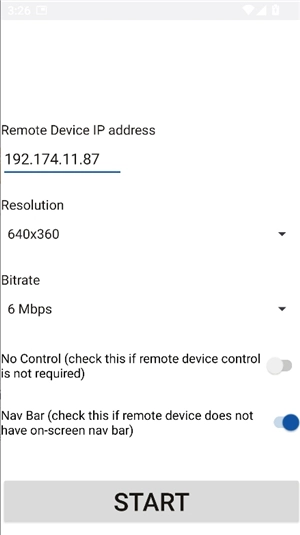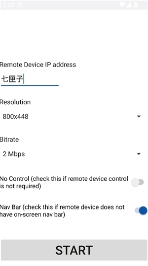 3、打开scrcpy安卓版应用程序,然后输入需要进行镜像操作的设备的IP地址。