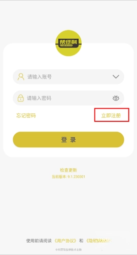 1、进入软件的登录界面后,点击登录按钮右下方的【立即注册】按钮。