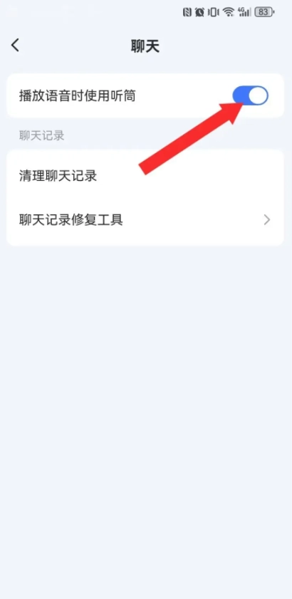3.点击开启播放语音时使用听筒即可自动播放语音