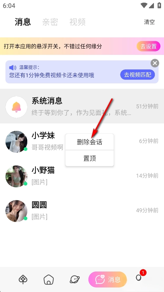 点击【删除会话】