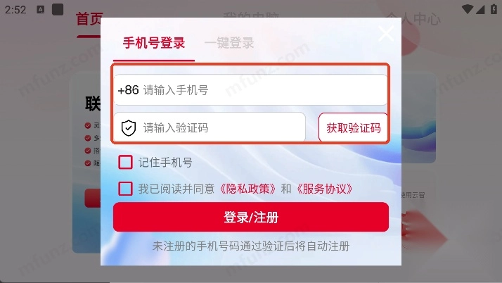 4、也可以使用本机号码进行一键登录(若号码未注册,验证通过后会自动完成注册)