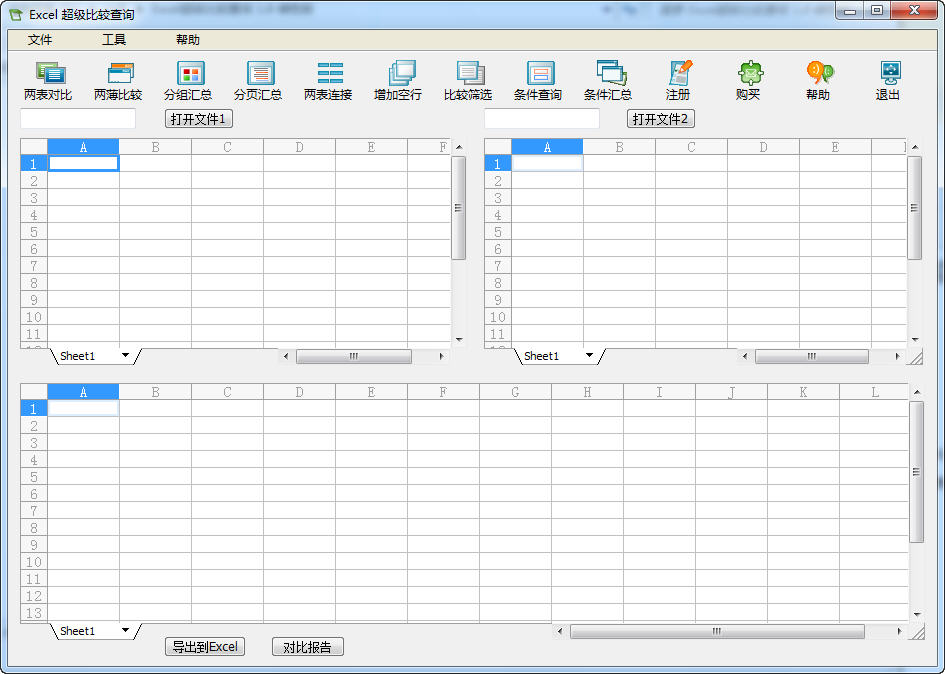 Excel超级比较查询是一款可以快速进行文档比较、数据汇总的Excel文件处理工具,它的功能众多,包括工作表对比、全文档比较、比较筛选、条件查询等九个功能模块,大大提高了用户处理文档的工作效率。
