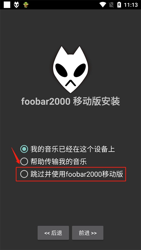 1、在这里你可以选择“跳过并使用foobar2000移动版”这一选项。