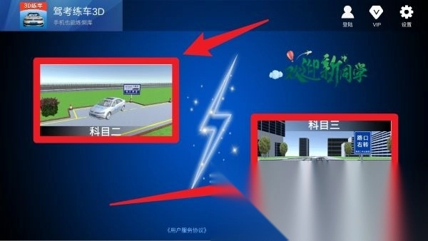 2、主界面设有科目二和科目三的入口,用户能够依据自身需求选择相应项目开展练习或进行模拟考试。