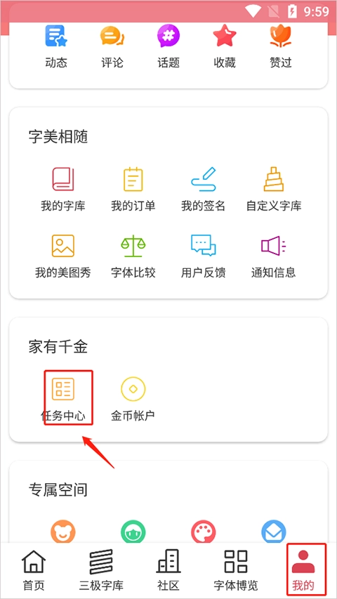 1、在“我的”页面选择“任务中心”。