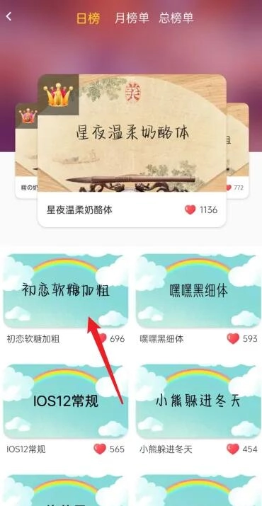1、点击字体榜单