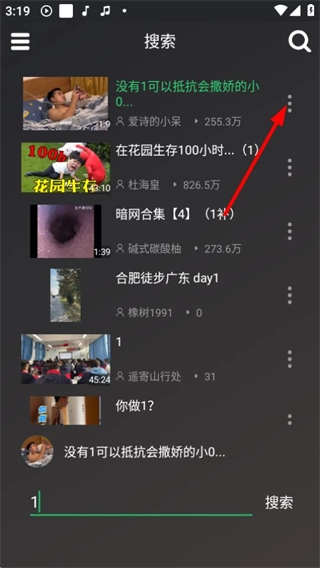 在搜索栏输入【1】,点击【搜索】按钮,就能找到相关内容。