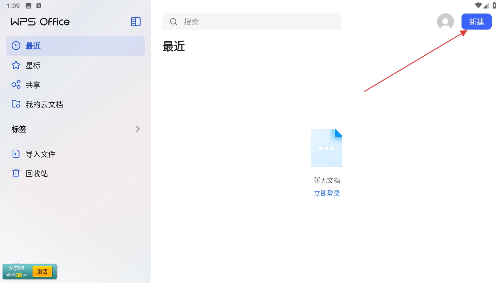进入主界面后,点击右上角的【新建】按钮,即可创建新文档。