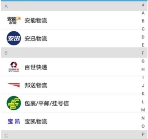 用户可以通过快递的首字母进行查看,以便更快捷地找到并查询相关信息。