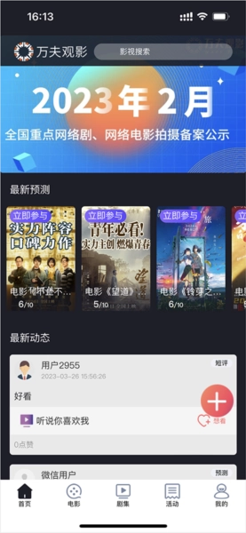 想必大家在闲暇时光里都有各自独特的娱乐消遣方式吧!今天给大家推荐一款专为大学生打造的影视资源共享与发布平台——万夫观影。这款软件可太厉害了,它具备其他影视软件难以企及的功能和特色,用过的小伙伴都赞不绝口!它通过网络收集观影大数据,智能分析影视内容数据,为用户生成个性化观影指南,让你在大数据支持下轻松选片!在这里,你能随时参与丰富的观影活动,分享自己的观影感受,还能找到志同道合的电影爱好者交流交友。平台整合了全网影视资源,想看就能看,感兴趣的用户还不赶紧行动起来?