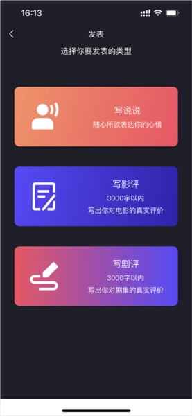 2、选择自己想要发表的类型,这边以写影评为例吧。