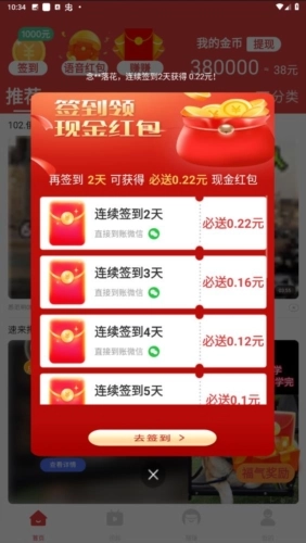 4、每日签到可领取红包,为用户的每日使用增添一份小小的惊喜。