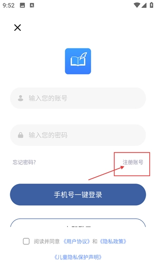 3、进入登录页面后,除了可以通过账号密码登录、手机号一键登录外,点击【注册账号】按钮,还能跳转至注册界面,进而完成新账号的创建。