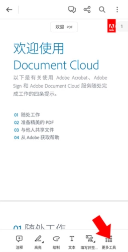 4、打开PDF文件后,若需要对PDF内容进行编辑,可点击右下角的更多工具。