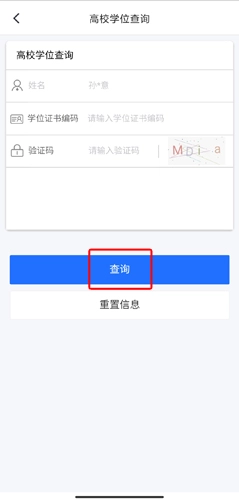 3、输入相关信息,点击查询按钮,就可以查询学位了。