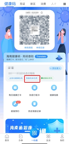 1、用户在首页中点击健康码按钮;