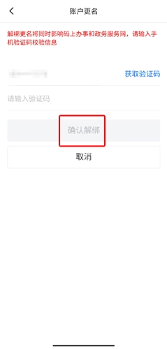 4、在账户更名页面中点击解绑个人信息按钮;