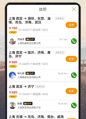 会依据司机日常运输的路线展开查看,再按照货运单来进行报价与接单。