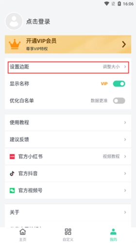 2、在我的界面选择设置边距并点击