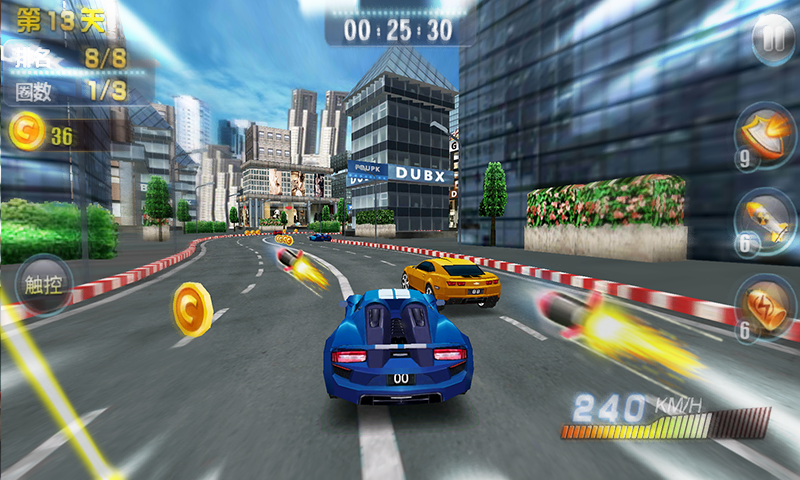 3D终极车神安卓版有14辆最酷最奢华的顶级跑车,数十个精妙设计的关卡,2秒钟让你high到400迈高潮,瞬间给你最刺激的驾驶享受,漂移、加速、追逐、冲撞、飞弹,加上逼真的音效,领略热血澎湃的赛车场面。在3D终极车神破解版中加入CTCC授权的豪车,体现风驰电掣的速度感,飙车为核心玩法,画面精美,速度感极强,可以使用导弹,地雷等阻碍别车前进的道具,使整个比赛变的丰富多彩,在赛道中吃取金币,更让用户有爽快的体验感。【游戏特点】
