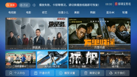 4、本软件的所有专线均为高速专线,其中99%具备高清画质,支持手动全屏播放功能,电视端播放体验更为流畅。