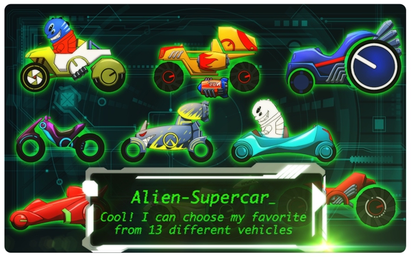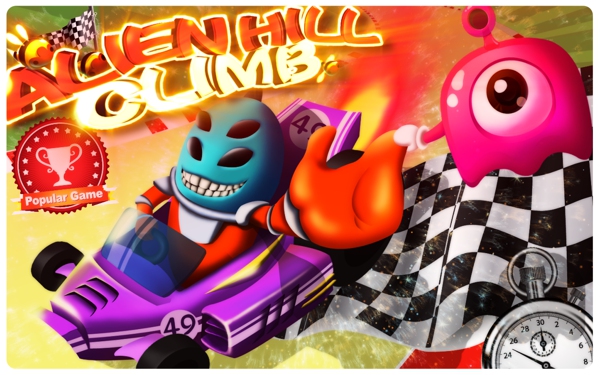 一款休闲游戏,可爱的外星人希尔光临地球,开始了他探险全宇宙的爬坡车之旅,他拥有高超的驾车技巧,并且不断追求更大的刺激,专门挑战没有人踏过的地方。游戏中十三种独特的爬坡环境,十三辆特殊的高科技赛车,透过收集金币以及各种特技动作获取奖励,升级汽车。别忘了在路上安装火箭喷射器哦,它可以让你飚的更快更远,你可以自由旋转跳跃,但是要小心,翻车或用光燃油,一切将重新开始哦!