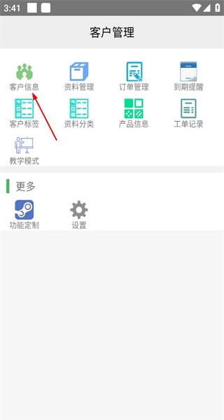 1、打开软件后,进入客户管理页面,查看各类功能选项,点击客户信息选项,进入客户信息的列表页面。
