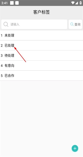 4、进入客户标签页面,浏览现有标签,选择已处理标签,完成该客户的标签添加操作。