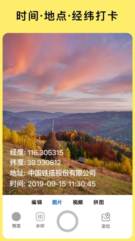 1、多样的水印模板。适用于工作拍照记录、团队考勤打卡、工程管理、外勤拍照、综合执法执勤、取证拍照、旅行拍照、宝宝成长记录、交通事故现场取证、代驾证据留存、家庭作业拍照拼图等场景。