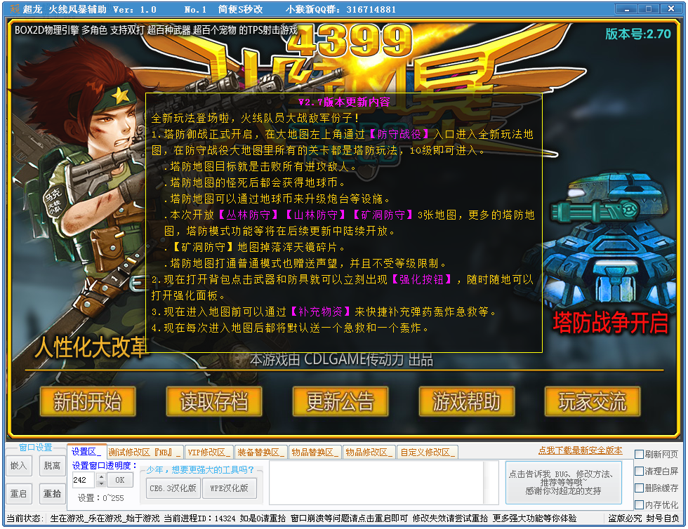 添加:稳定修改自定义改攻击,稳定改无限子弹,稳定改无限手雷,稳定新手装备攻击超高等功能!