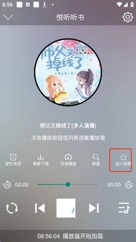 4.在播放页面点击“加入收藏”,之后就能在“我的书架”中查看了。
