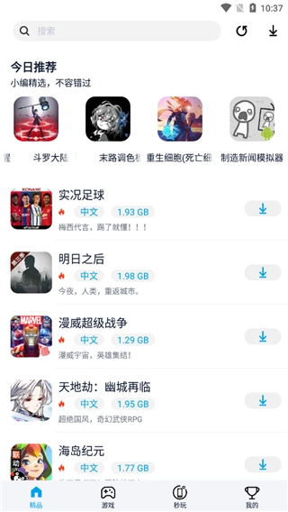 1、打开淘气侠版2026,首页的“精选推荐”板块集合了近期的高分新游戏和人气热门作品,通过滑动就能找到自己喜欢的游戏。
