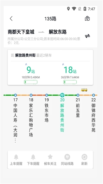 支持把常用线路的站点添加到候车关注列表,系统会实时展示下一班车的预计到达时间,让用户能快速查看,候车更便捷。