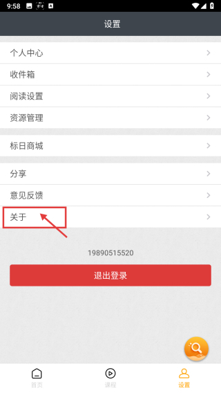 2、在设置页面,点击关于选项,进入关于界面。