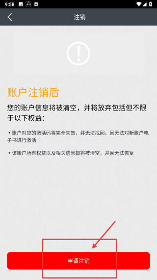 4、进入注销页面后,点击“申请注销”按钮,随后根据页面提示逐步完成账号注销的相关操作。