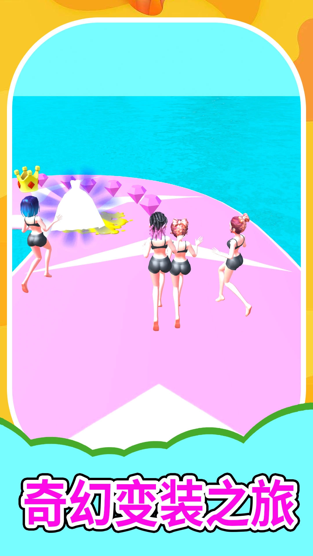 2、在行进途中收集各类道具,和其他玩家展开时尚穿搭比拼,尽情展现自己的设计天赋。